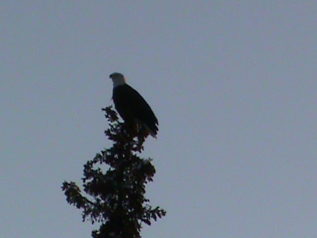 The lab did catch a eagle, it was at the bird bath and the mechanic and lab were out on the trail, the lab does like to chase birds, so when she saw that eagle close to the ground she went after it and actually caught the eagle, of course the lab is going to lose in that event, the eagle gave her a few good pecks and she let it go, good thing the eagle didn't get talons on her. She did come to the mechanic when he called her back.